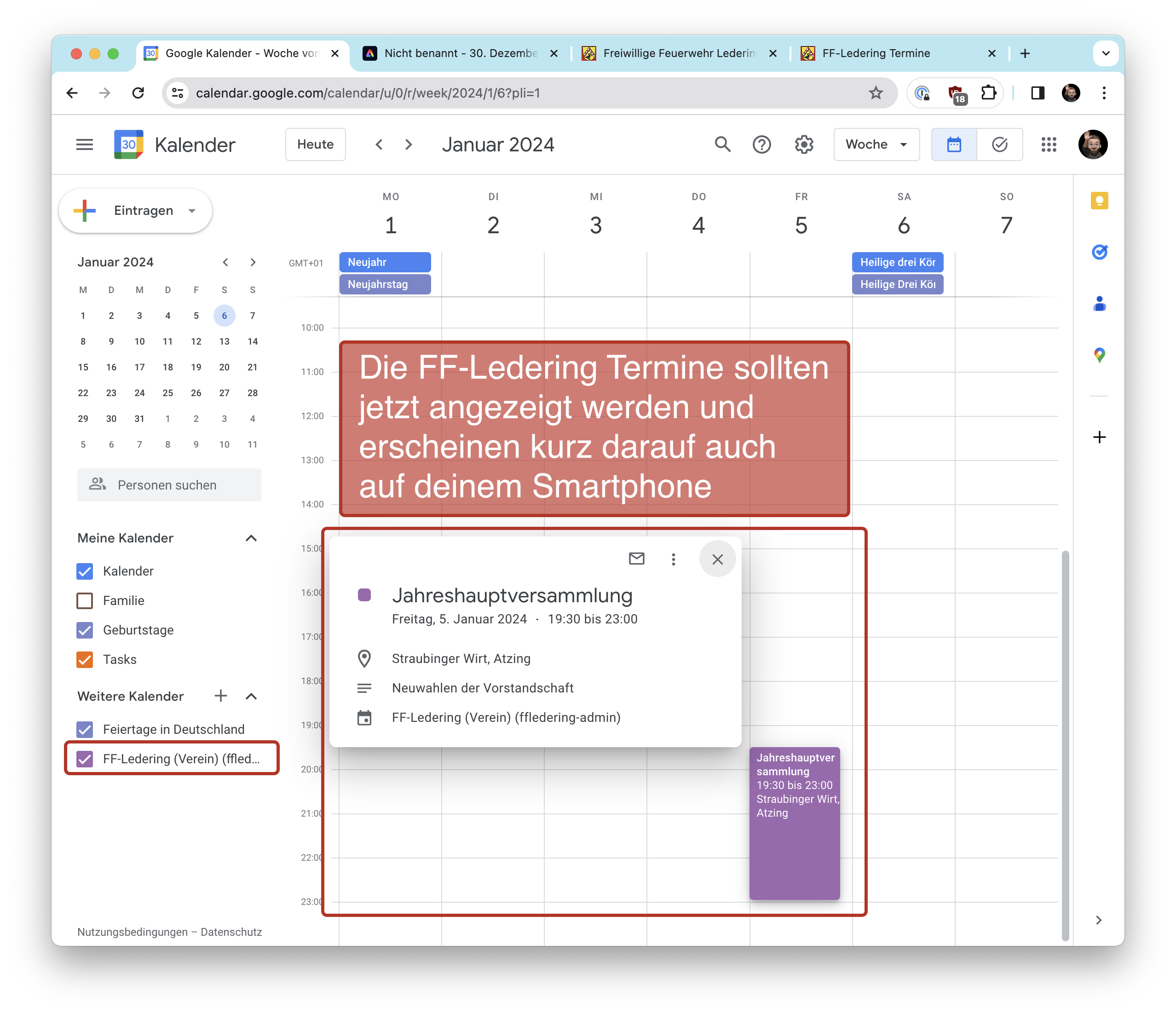 | Sa., 21. Nov. | 14:00 | Feuerwehr-Kindernachmittag Vorbereitungen für die Adventsfeier der Feuerwehr zusammen mit den Kindern und Jugendlichen der Feuerwehr Dorfgemeinschaftshaus Ledering |