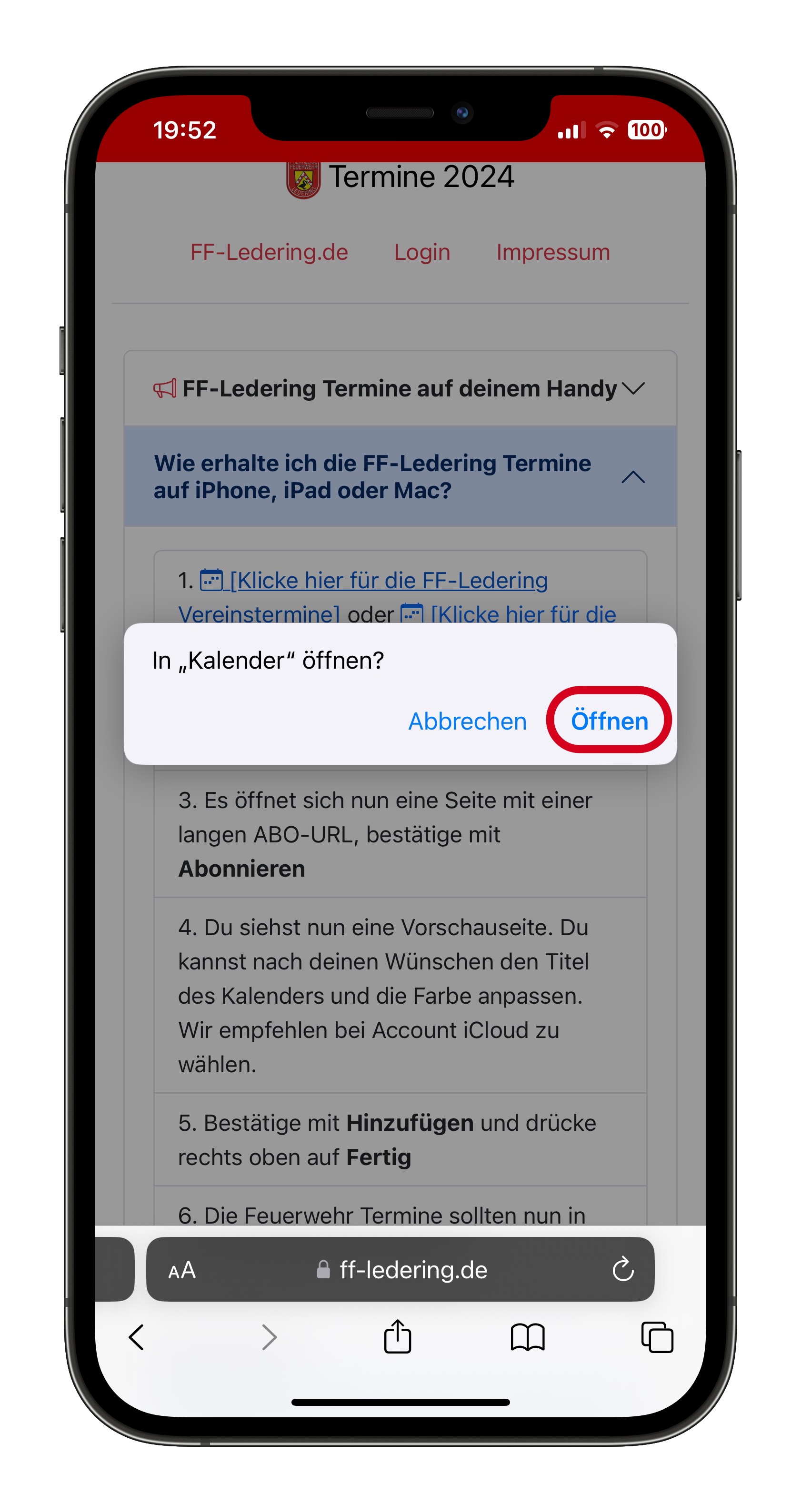 | Sa., 13. Juni | 12:30 | Gründungsfest 100 Jahre Freiwillige Feuerwehr Klessing Treffpunkt am Feuerwehrgerätehaus Feuerwehrhaus Ledering |